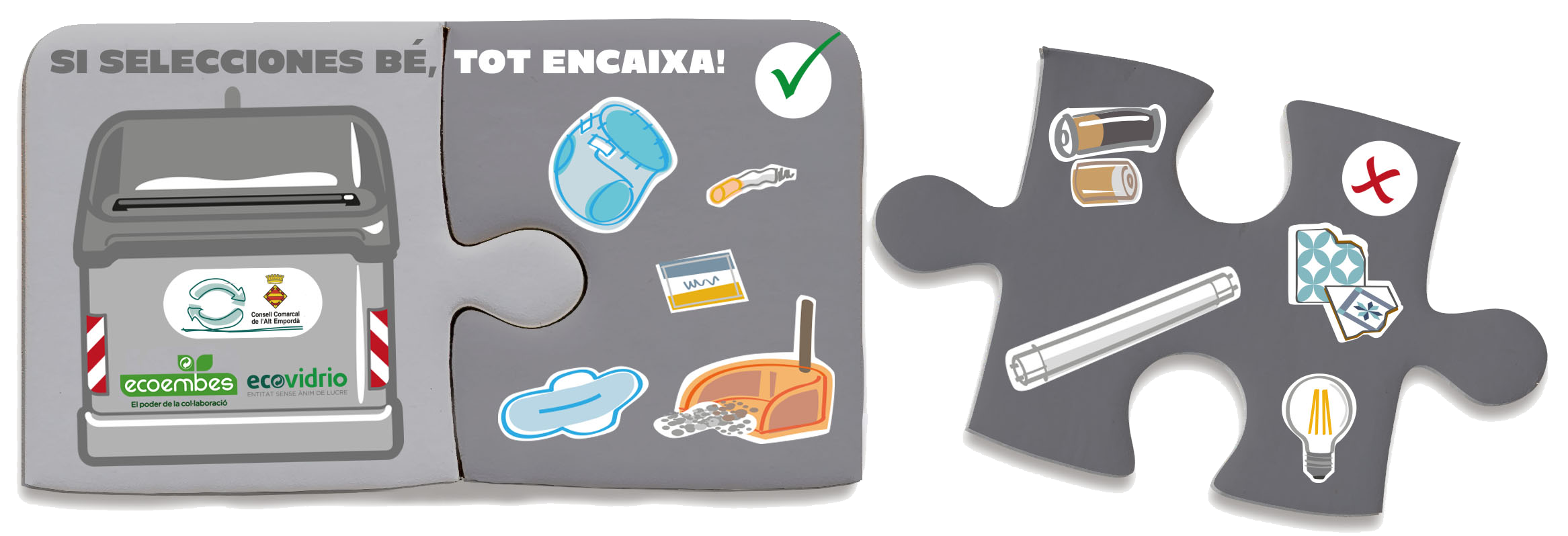 CAMPANYA : Si selecciones bé, tot encaixaPer això la imatge que contenen algunes de les accions és la que recorda un trencaclosques, en aquest cas un per fracció. Aquesta imatge, per augmentar la seva força i coneixement per part de a població es podrà fer servir en diferents accions durant els propers anys.