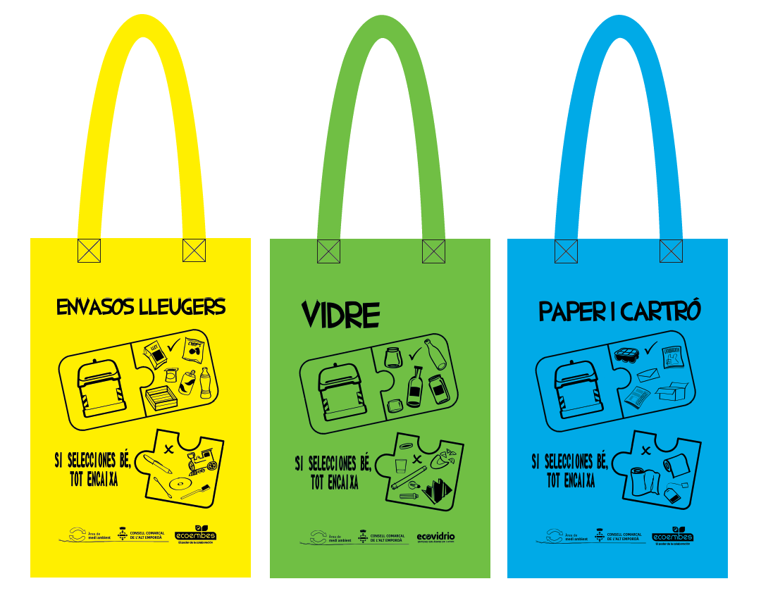 Aquesta acció es proposa per a municipis que tenen delegada la recollida selectiva i que tenen un percentgatge de recollida selectiva molt baix. Per fer augmentar la participació i facilitar-ho als veïns es proposa el repartiment de tres bosses de rafia de colors. El municipi en podrà sol·liictar, poseu-vos en contacte amb l'àrea de medi ambient per a concretar el nombre disponible .